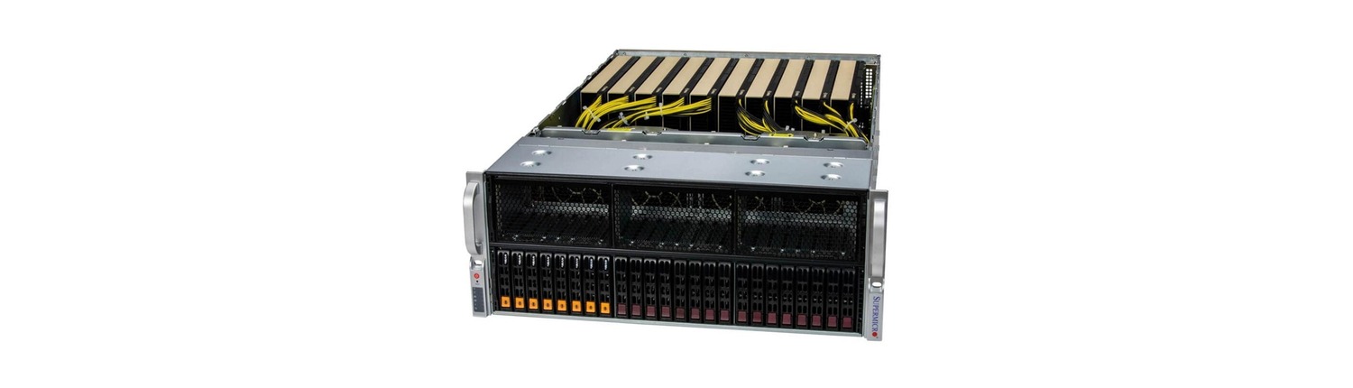 Supermicro SYS-421GE-TNRT GPU SuperServer is a powerful 4U dual-root PCIe GPU system designed for AI, HPC, and data analytics workloads, supporting up to 10 GPUs for massive compute performance.